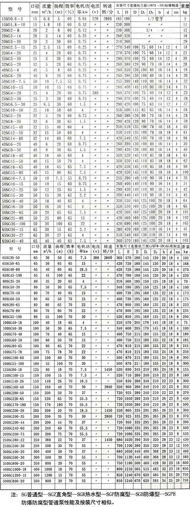 4.SGB系列防爆管道泵適用于輸送無腐蝕性液體,有甲烷或煤礦井下固定設(shè)備I類及工廠IIA、II B級,溫度組別為 T1、T2、T3、T4組存在爆炸性混合物的其它工業(yè)場所。使用溫度80℃以下。