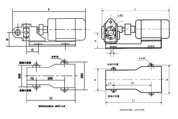 KCB18.3-200、2CY1.1-12齒輪式輸油泵配帶管螺?口的腰形法蘭;其余泵不配帶法蘭,當(dāng)用戶需要配帶法蘭時(shí),應(yīng)在訂貨中注明。